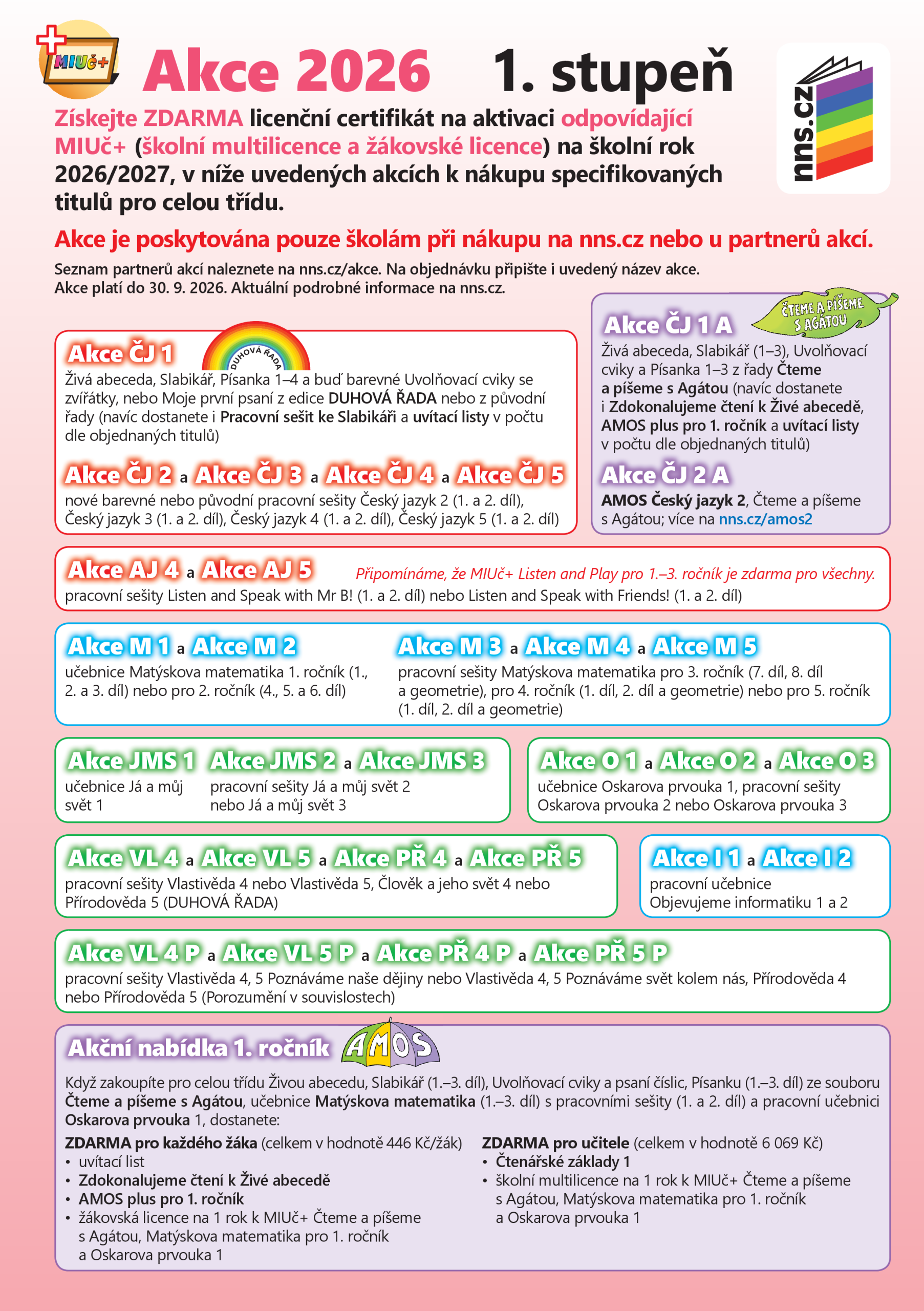 • žákovské licence na 1 rok k MIUč+ Čteme a píšeme s Agátou, Matýskova matematika pro 1. ročník a Oskarova prvouka 1