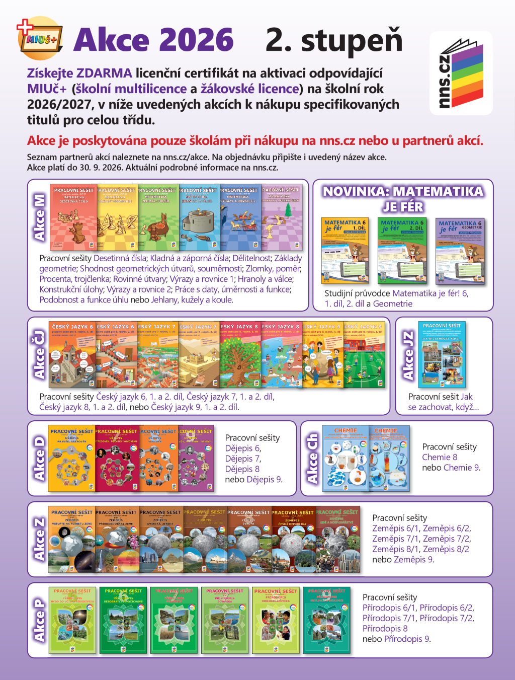 Když zakoupíte pro celou třídu Živou abecedu, Slabikář (1.–3. díl), Uvolňovací cviky a psaní číslic, Písanku (1.–3. díl) ze souboru Čteme a píšeme s Agátou, učebnice Matýskova matematika (1.–3. díl) s pracovními sešity (1. a 2. díl) a pracovní učebnici Oskarova prvouka 1, dostanete: