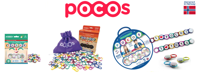 Stavebnice POCOS – hravé učení s písmeny, čísly a symboly. Pružné dílky pro tvorbu náramků, slov i her.
