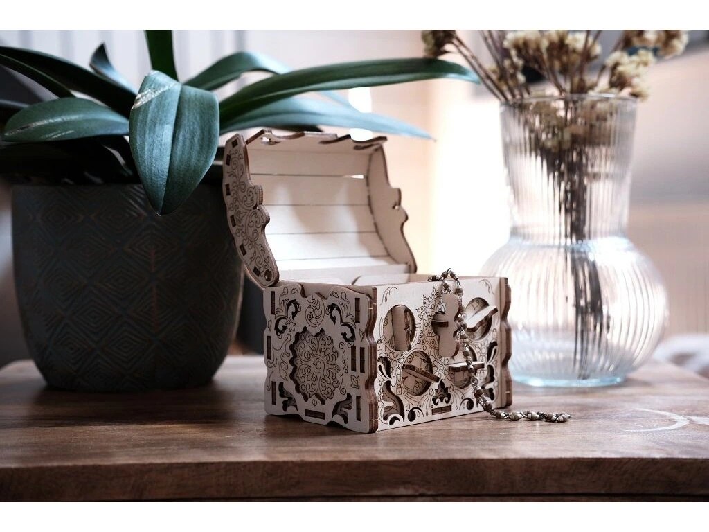 Vstupte do světa napínavého dobrodružství s 3D Dřevěnou skládačkou hlavolamu Secret Treasure Box od EscapeWelt! Tento jedinečný hlavolam je nejen exkluzivní krabička na dárek a krásná dekorace, ale především výzvou pro důvtip váš i obdarovaného.