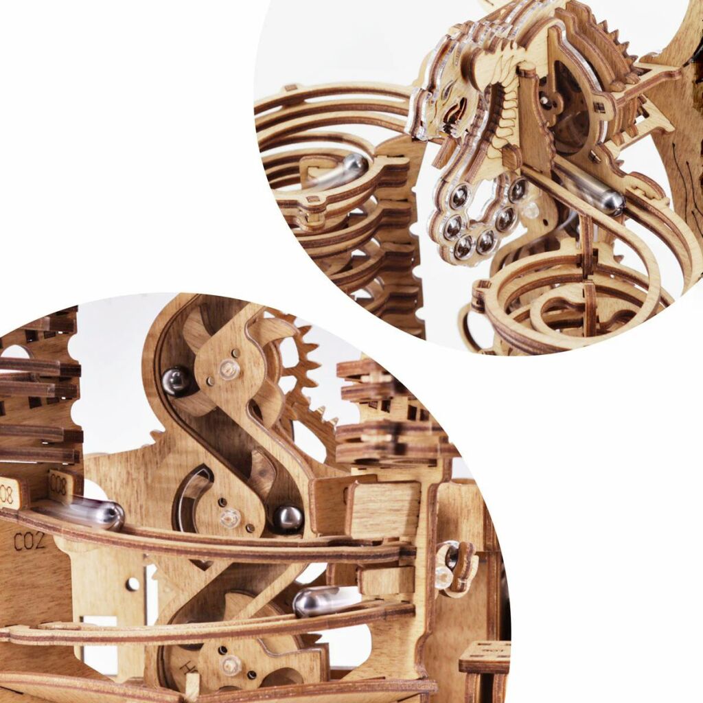 Potěšte své blízké dárkem a podpořte tak rozvoj jejich technických dovedností. Sestavte si vlastní kuličkovou dráhu, otáčejte klikou, vyvážejte kuličky výtahem nahoru a sledujte, jak se řítí dolů. Pomocí přepínače můžete zvolit, jakou cestou se vydají. Všechny dílky jsou precizně vyřezány laserem a vyrobeny z udržitelného vysoce kvalitního březového dřeva. Dílky do sebe přesně zapadnou bez použití nástrojů a lepidla, aby výsledek byl stabilní a odolný. Návod k sestavení je součástí balení.