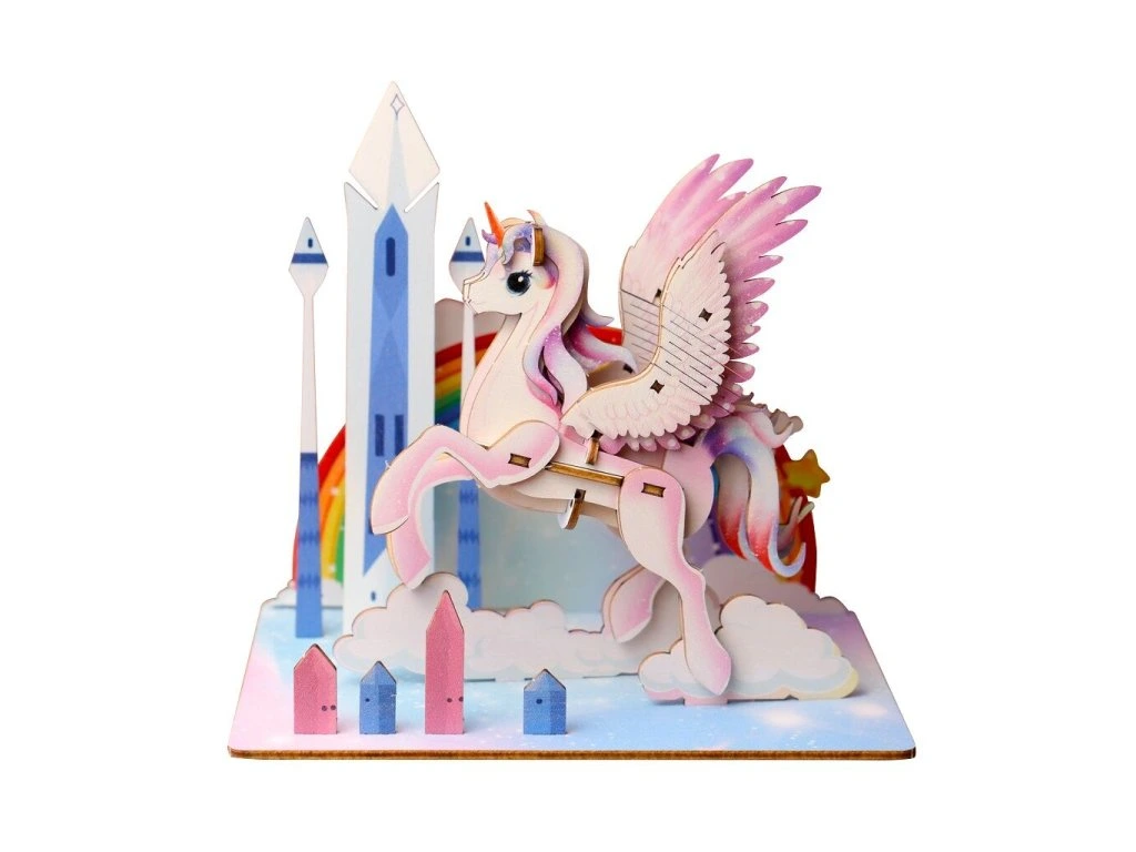 3D puzzle Jednorožec je pro děti zábavné a zároveň výzvou pro rozvoj jejich prostorové představivosti, trpělivost a logického myšlení. Rozvíjí se zároveň také jemná motorika. Toto dřevěné 3D puzzle obsahuje 33 dílků, které musí být správně složeny dohromady, aby vytvořily podobu oblíbeného jednorožce.
