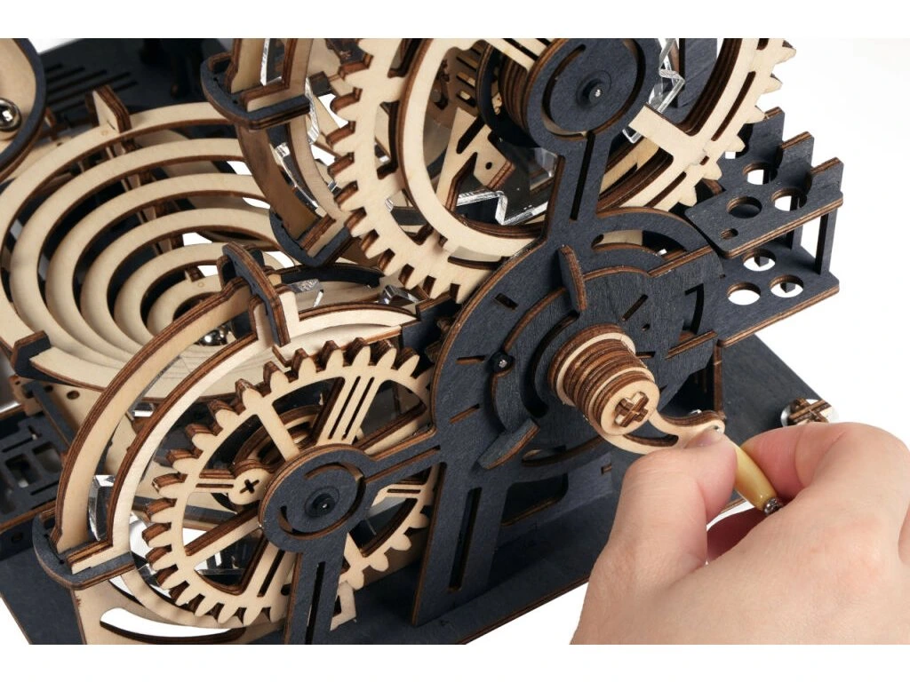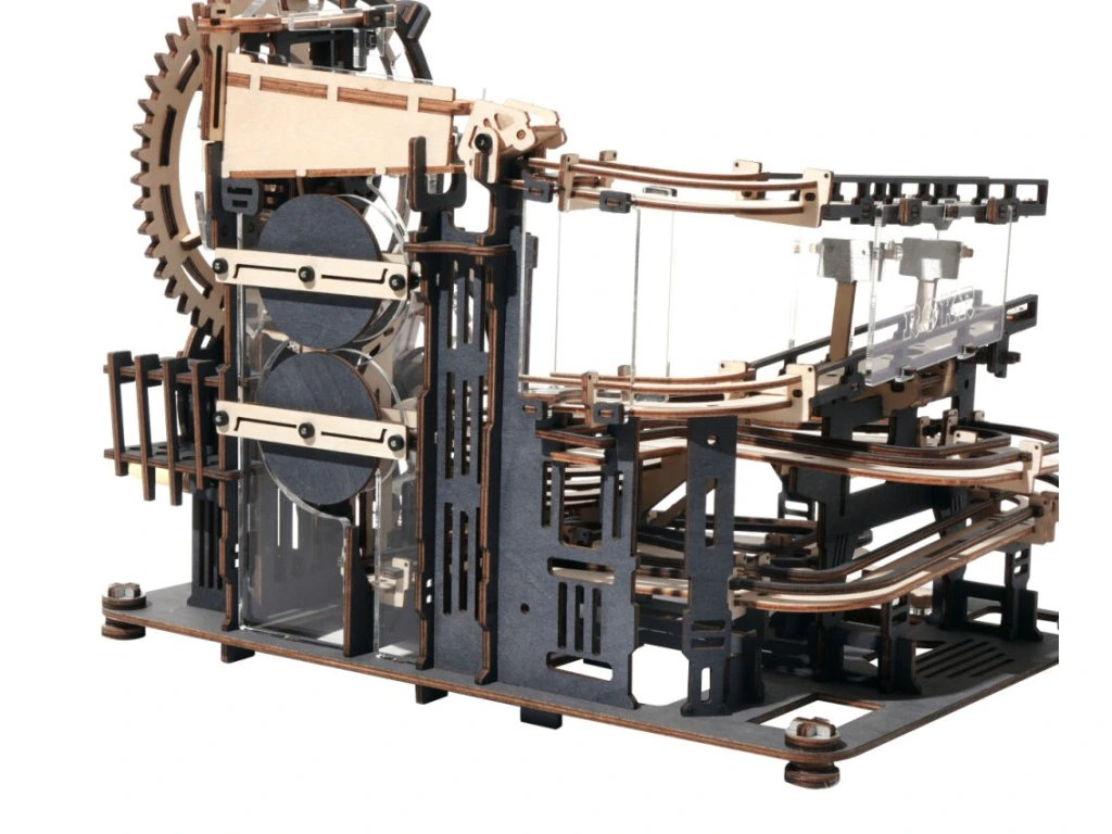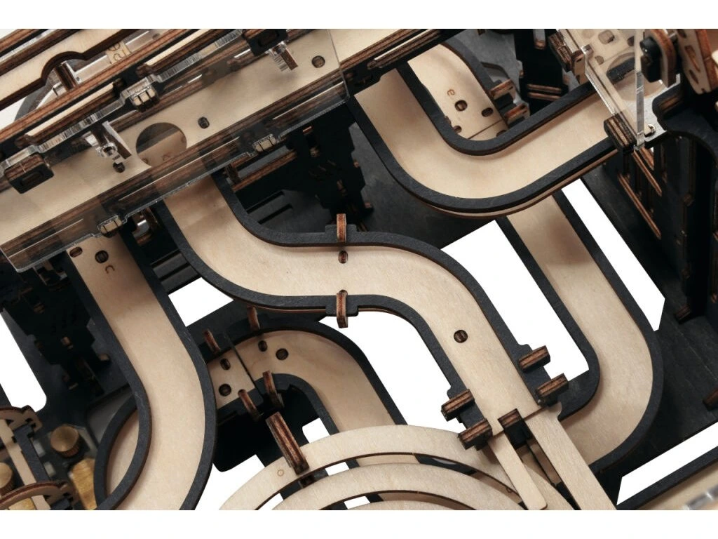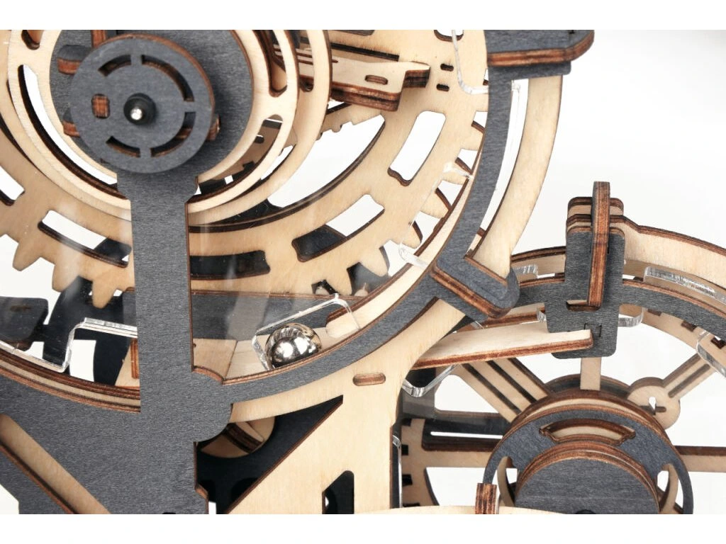 Vydejte se do dynamického světa města kuliček s touto jedinečnou 3D skládačkou Kuličková dráha Město! Tato sada obsahuje 294 dřevěných dílků, ze kterých si postavíte důmyslný systém dráhy pro kuličky, plný zatáček, sklonů a překážek, který zaručí napětí a zábavu každému milovníkovi konstrukčních výzev. Díky této hračce děti rozvíjejí kreativní myšlení, motorické dovednosti i logické uvažování – a ještě zažijí hodiny zábavy při sledování kuliček na jejich cestě!