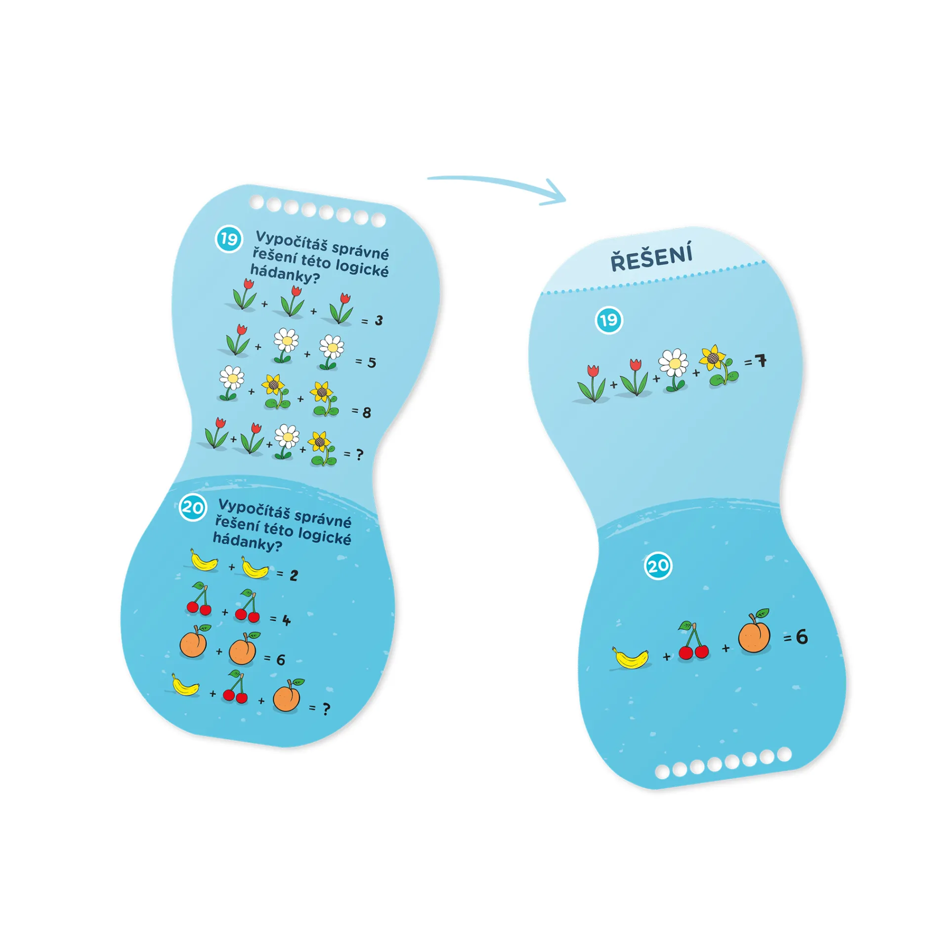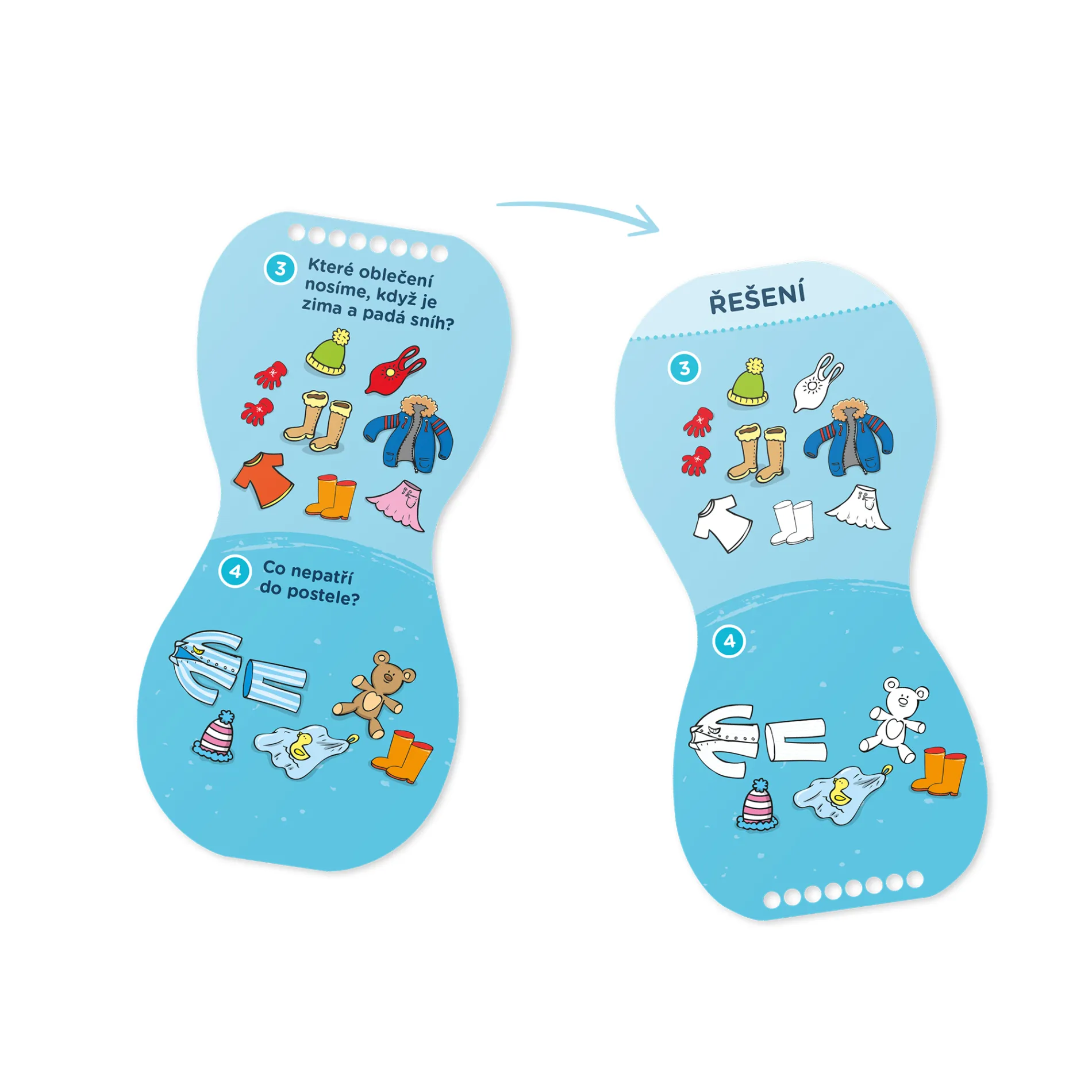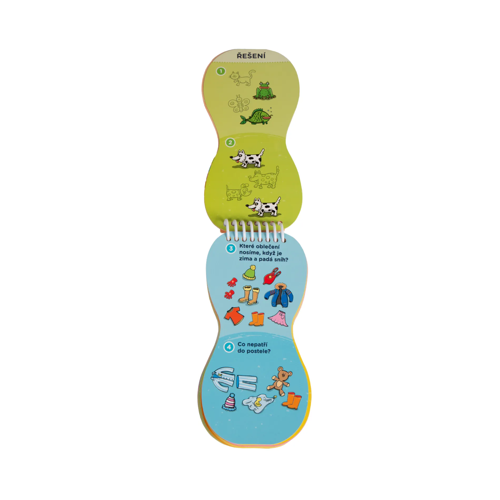 Aktivity jsou barevně odlišeny dle oblastí. Po otočení stránky si děti ověří správné řešení úkolu.