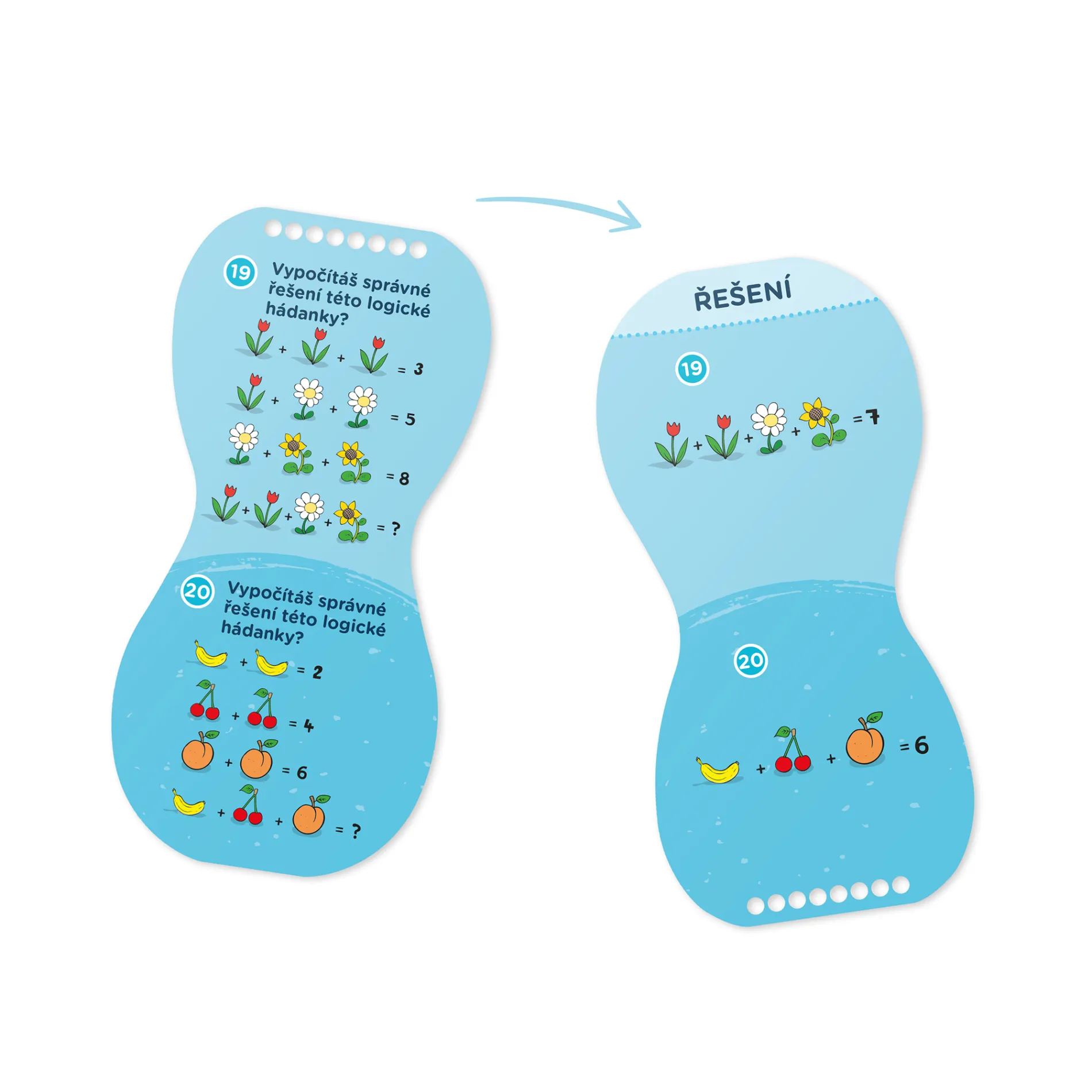 Aktivity jsou barevně odlišeny dle oblastí. Po otočení stránky si děti ověří správné řešení úkolu.