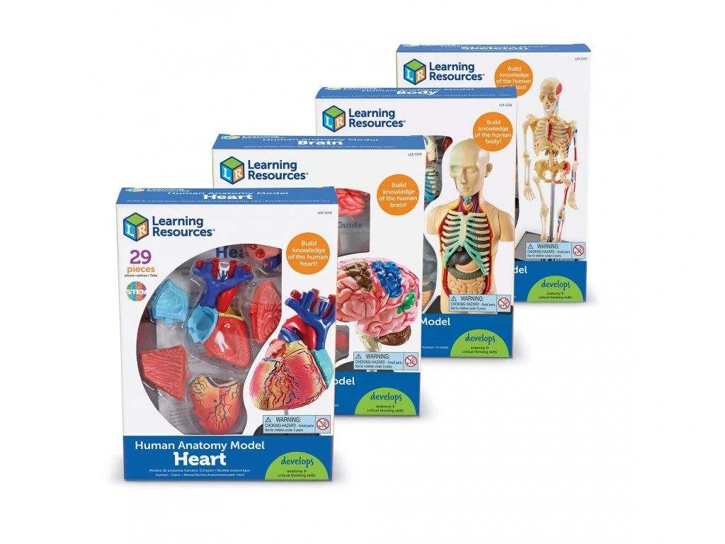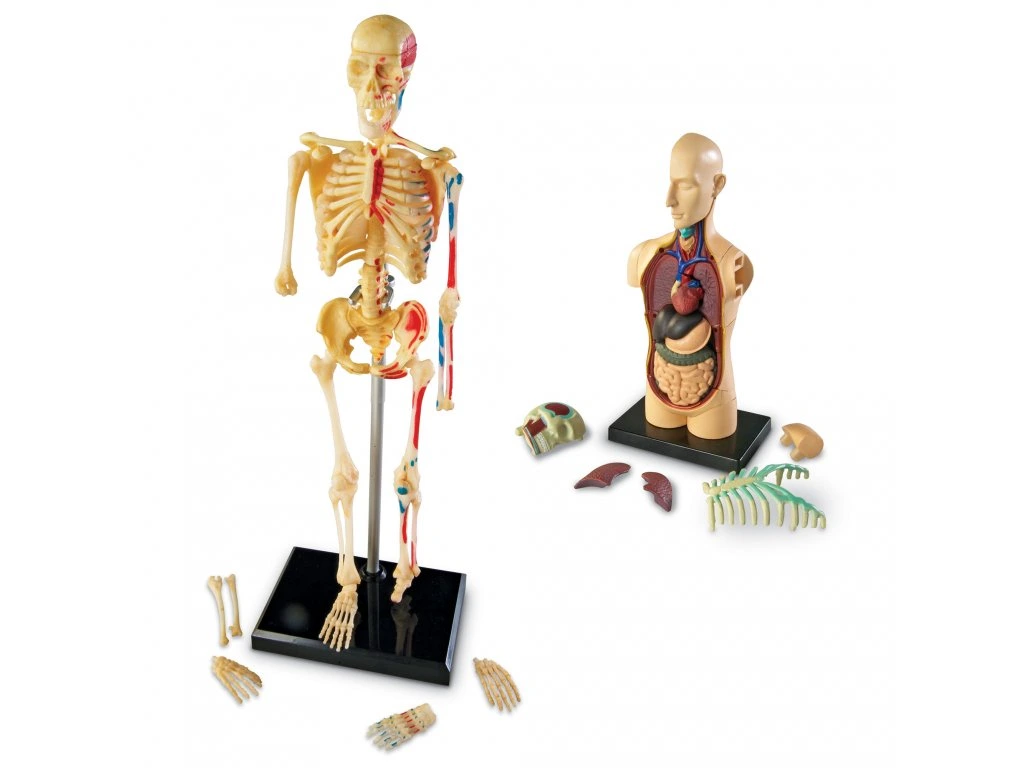 Velký set vhodný do škol k nauce o lidském těle. Obsahuje malé modely lidského srdce, mozku, těla a orgánů a lidské kostry.