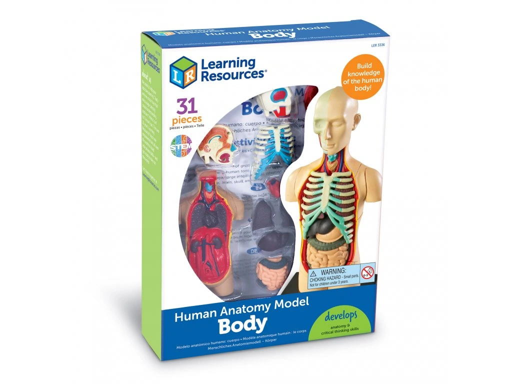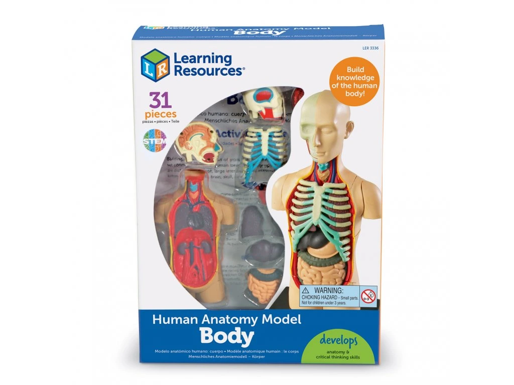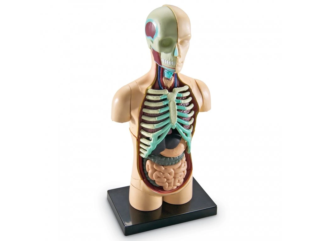 Didaktická pomůcka, která určitě zaujme malé vědce a budoucí lékaře. Složeno ze 31 částí, včetně stojánku. Po složení modelu je výška trupu cca 15 cm.