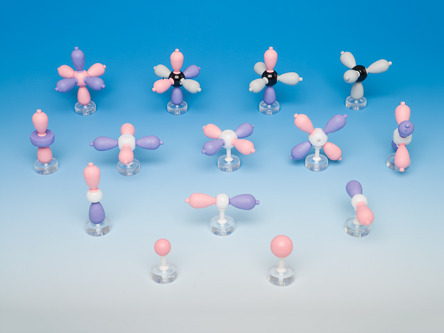 Tato sada Molymod obsahuje dostatečný počet dílů k současnému vytvoření 14 typů atomových orbitalových modelů.