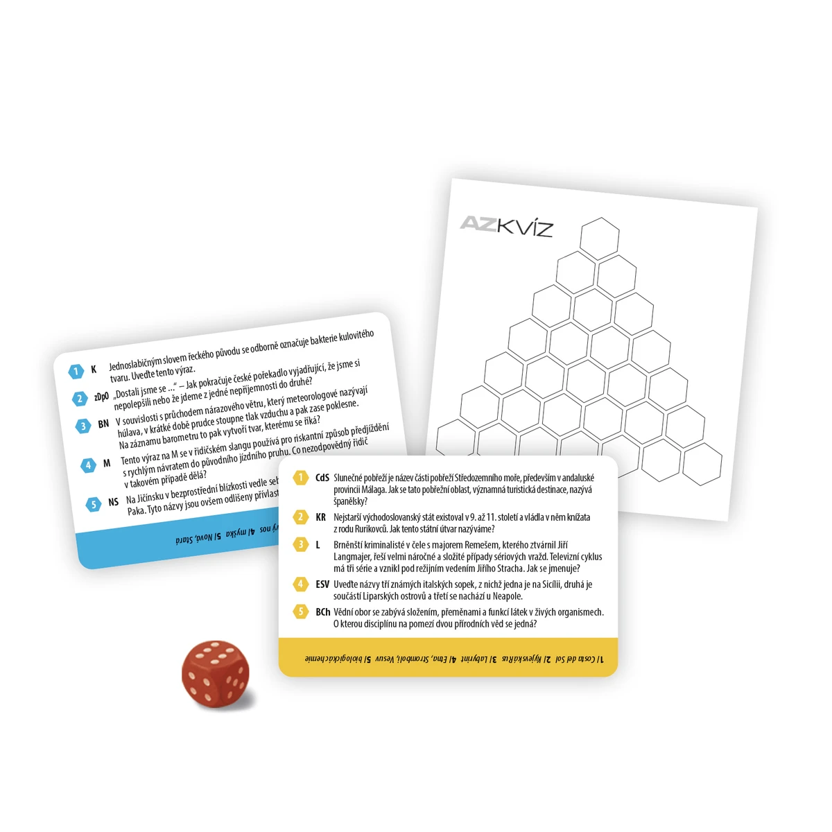 Svoji oblíbenou hru si tak můžete zahrát kdekoliv a porovnat své znalosti se svými přáteli. Hru je možné hrát samostatně nebo můžete kartičky použít k rozšíření zásoby otázek ve velké hře AZ kvíz.