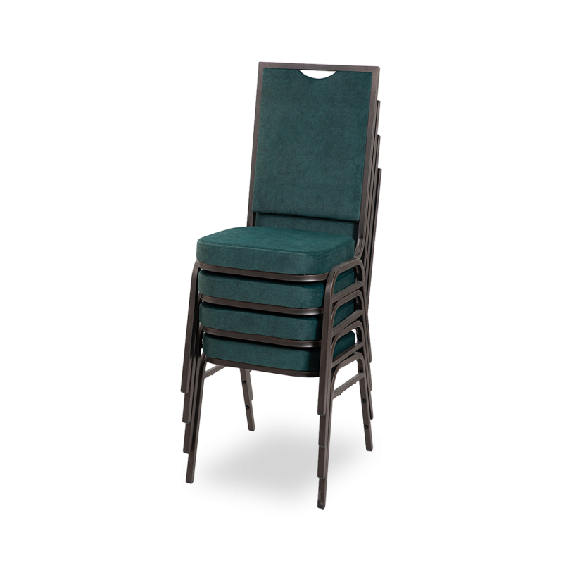 Díky stohovatelnosti můžete naskládat až 18 židlí do jedné hromady, čímž ušetříte místo pro jejich skladování. Námi nabízené banketové židle jsou určeny pro komerční použití, a proto jsou vybaveny speciálními nárazníky, které chrání rám při stohování, a praktickým držadlem na opěradle usnadňujícím přenášení. Nohy banketových židlí mají speciální patky, které chrání podlahu před poškrábáním.