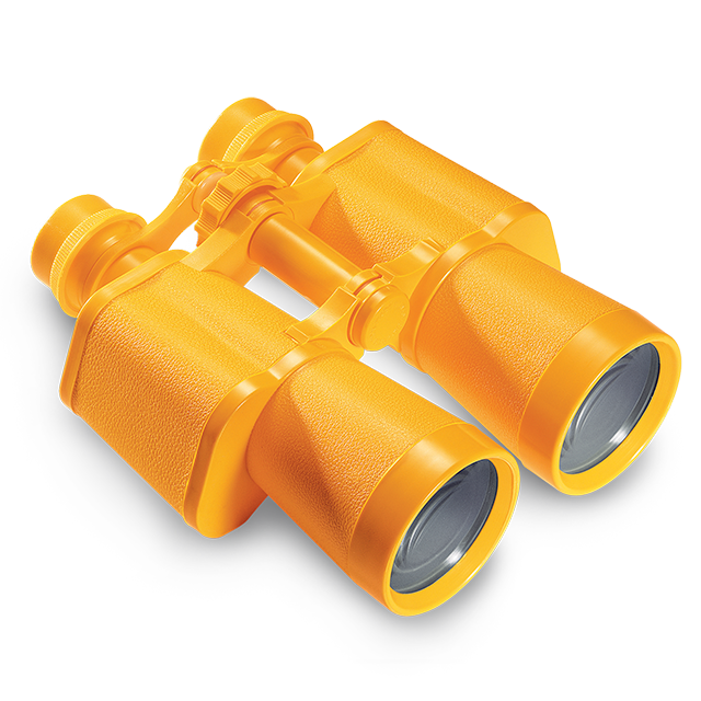 Binokulární dalekohled z plastu ABS s transportním pouzdrem.