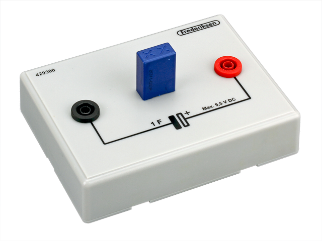 Blok s kondenzátorem s velmi vysokou kapacitou a dvěma bezpečnostními zdířkami o průměru 4 mm