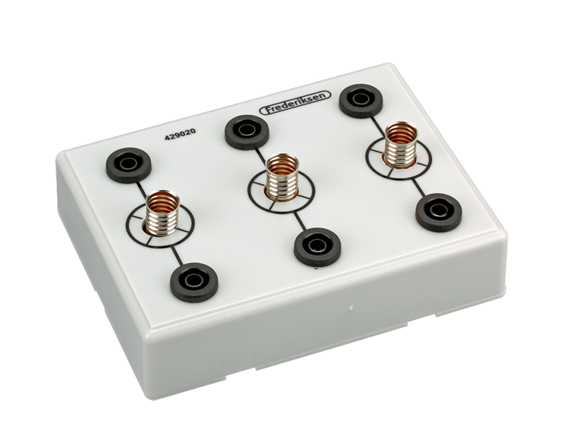 Blok s 3 žárovky spaticí E10, 6 bezpečnostních zdířek o průměru 4 mm