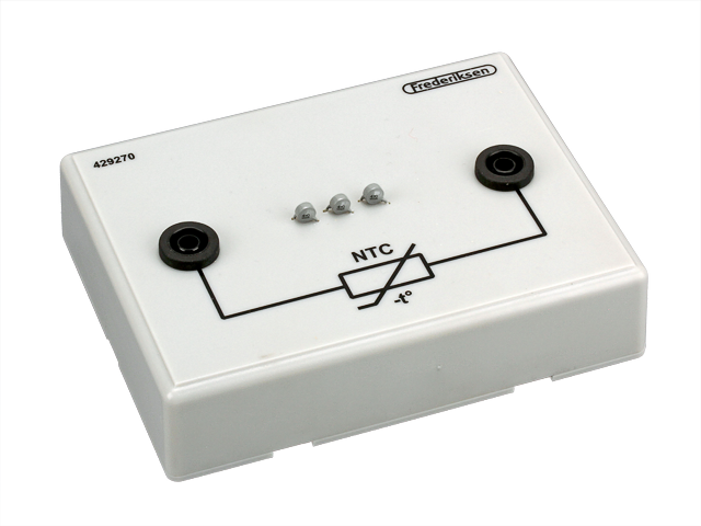 Blok s NTC termistorem – jeho odpor klesá s rostoucí teplotou – a dvěma bezpečnostními zdířkami o průměru 4 mm.