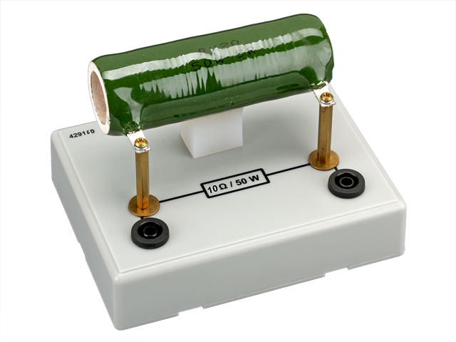 Blok s odporem 10 Ohm a 2 bezpečnostními zdířkami o průměru 4 mm.