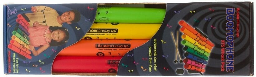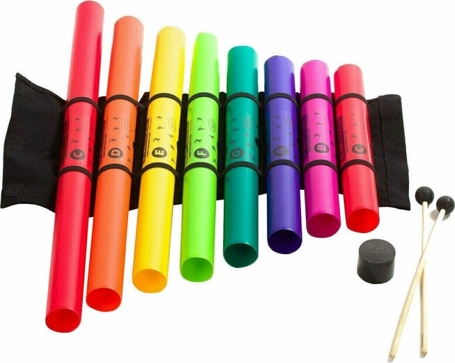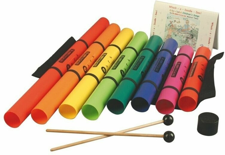 Sada 8 trubek Boomwhackers s držákem a hůlkami.