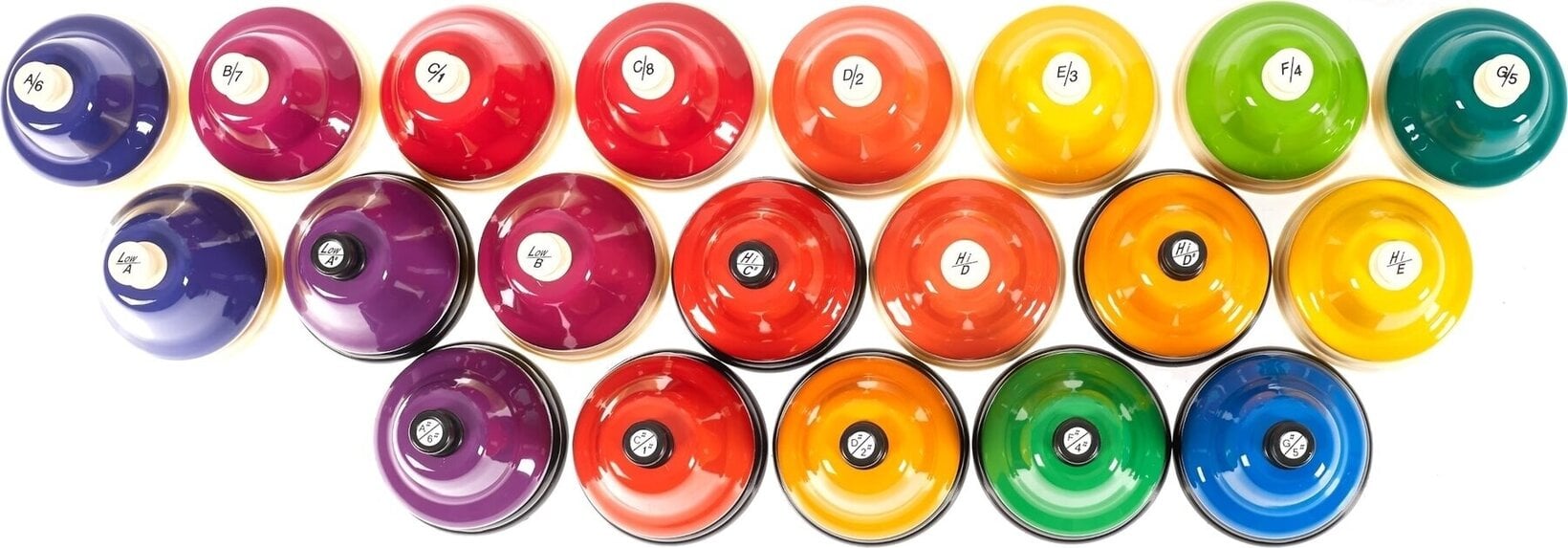 Tyto zvonky jsou vyrobeny podle nejvyšších standardů, což zaručuje vynikající kvalitu a přesné ladění. Barvy zvonků CHROMA-NOTES se shodují s barvami zvonků Boomwhackers, což usnadňuje učení a hraní. Každý kovový zvonek je označen příslušným tónem a číslem podle hudební stupnice se snadno stlačitelným tlačítkem.