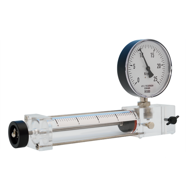 Aparatura se skládá z graduovaného válce s pístem a manometru o průměru 100 mm.