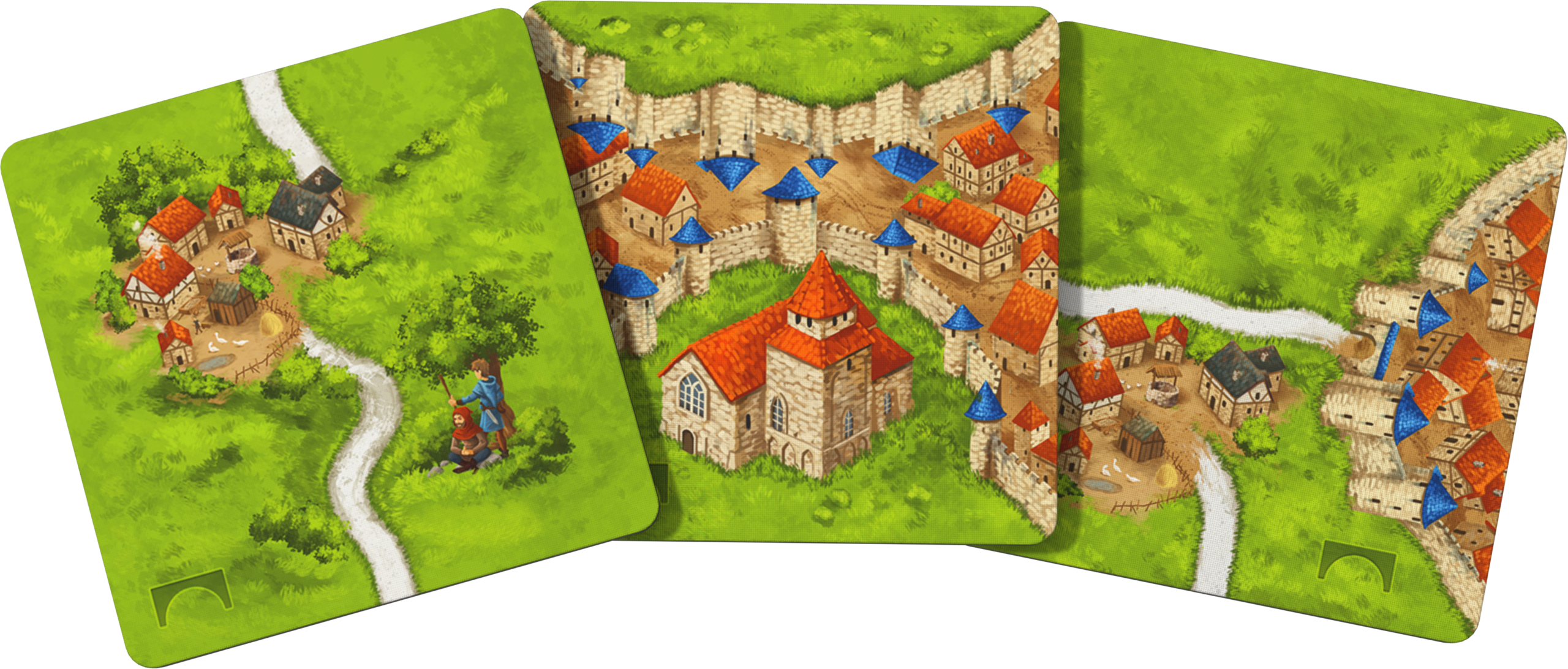 16 kartiček krajiny (15 kartiček a 1 kartička řeky), 12 mostů, 6 žetonů stodol, 6 žetonů hradů.