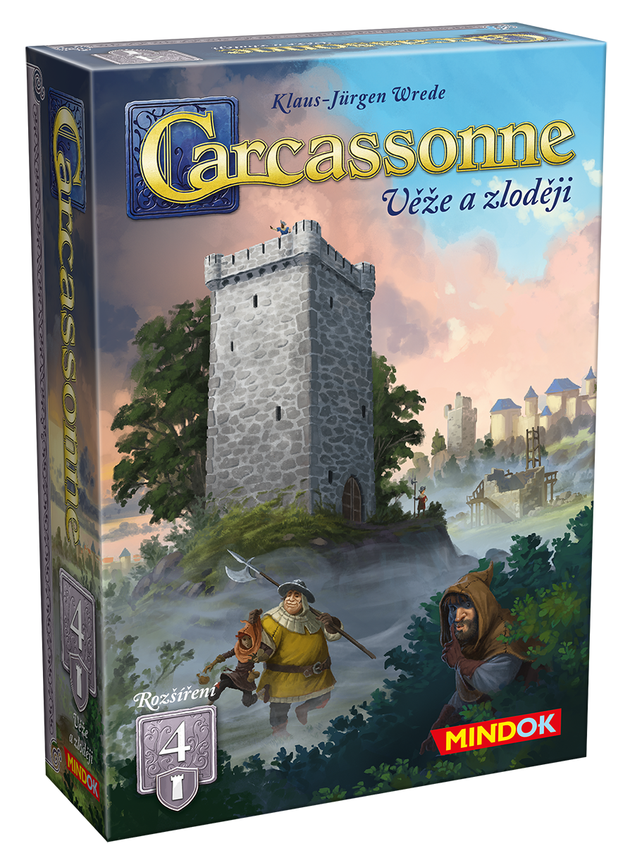 Vyšlete strážné na věže a chraňte své území s rozšířením Věže a zloději pro hru Carcassone. V tomto rozšíření se stanete staviteli věží a strážnými, kteří odhalují zloděje a získávají za to body. Toto rozšíření nelze hrát samostatně, ale můžete ho kombinovat se základní hrou a dalšími rozšířeními.