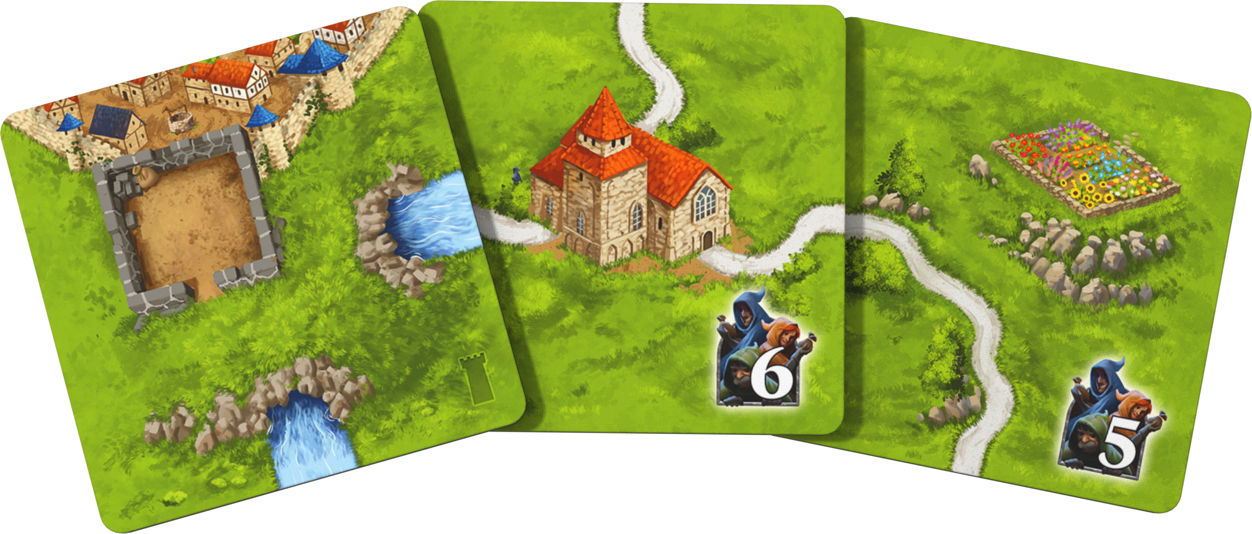 13 kartiček krajiny (označených), 5 kartiček věže, 20 dřevěných dílků věže, 1 skládací věž jako zásobník na kartičky.