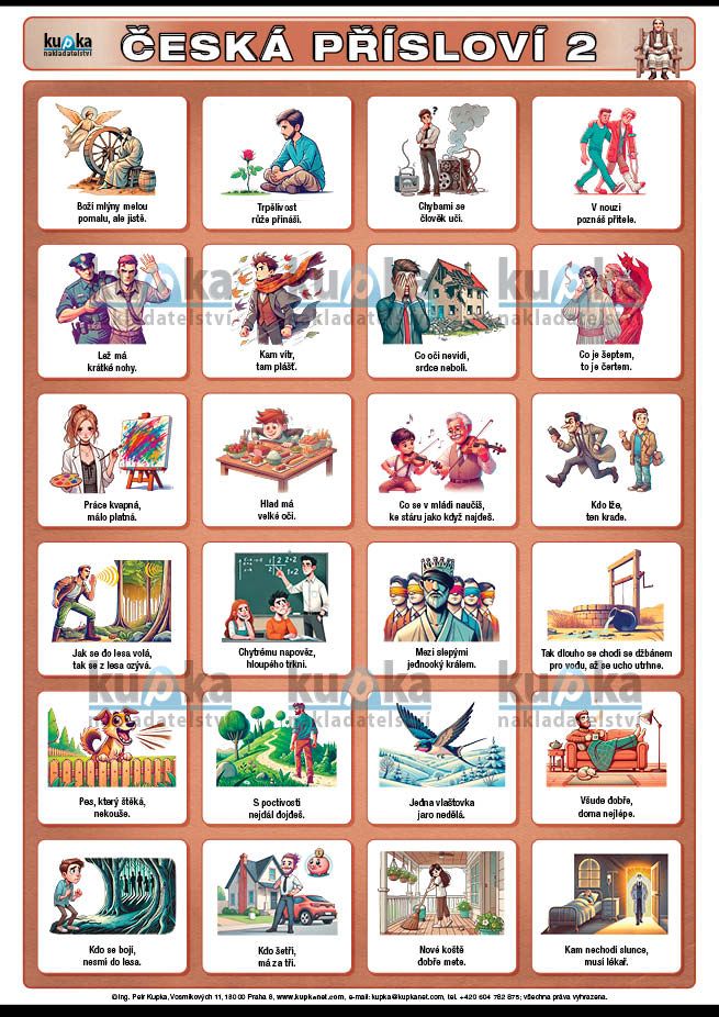 Nástěnný obraz našich nejčastějších českých přísloví (2.díl) včetně ilustrace