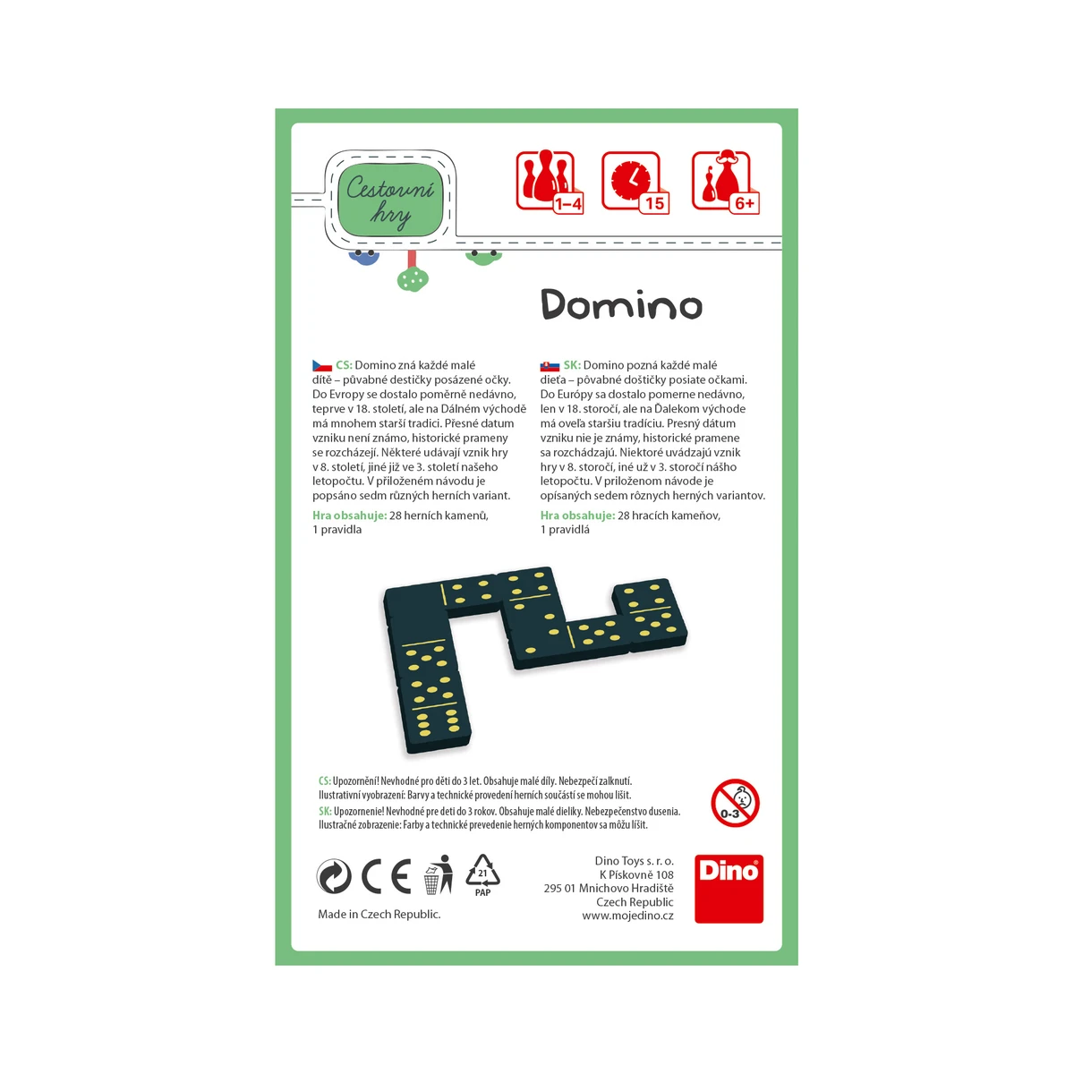Aby vašim cestám dominovala jen zábava, vybavte se cestovním dominem. Klasická verze s číslovanými hracími kameny ve zmenšené podobě je vhodná pro všechny, kdo umějí do šesti napočítat a chtějí si hravou formou procvičit postřeh, základy strategie i schopnost soustředění.