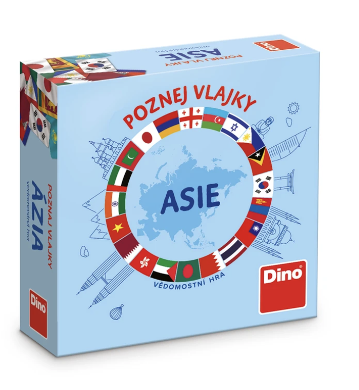 Vědomostní karetní hra, která procvičí znalosti vlajek a základních informací o státech Asie. Poznáte vlajky všech 51 asijských států? Určíte, které zemi patří vlajka, jaké má hlavní město, úřední jazyk, měnu, sousední státy nebo rozlohu? Hra obsahuje i sadu kvízových otázek o zajímavostech asijských států. Kdo první správně odpoví, získává kartu. Změřte síly v této naučné zábavné hře. Hru lze hrát samostatně nebo propojit se státy dalších světadílů z této edice.