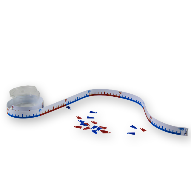 K vyznačení čísel slouží 10 kusů červených a 10 kusů modrých sponek.