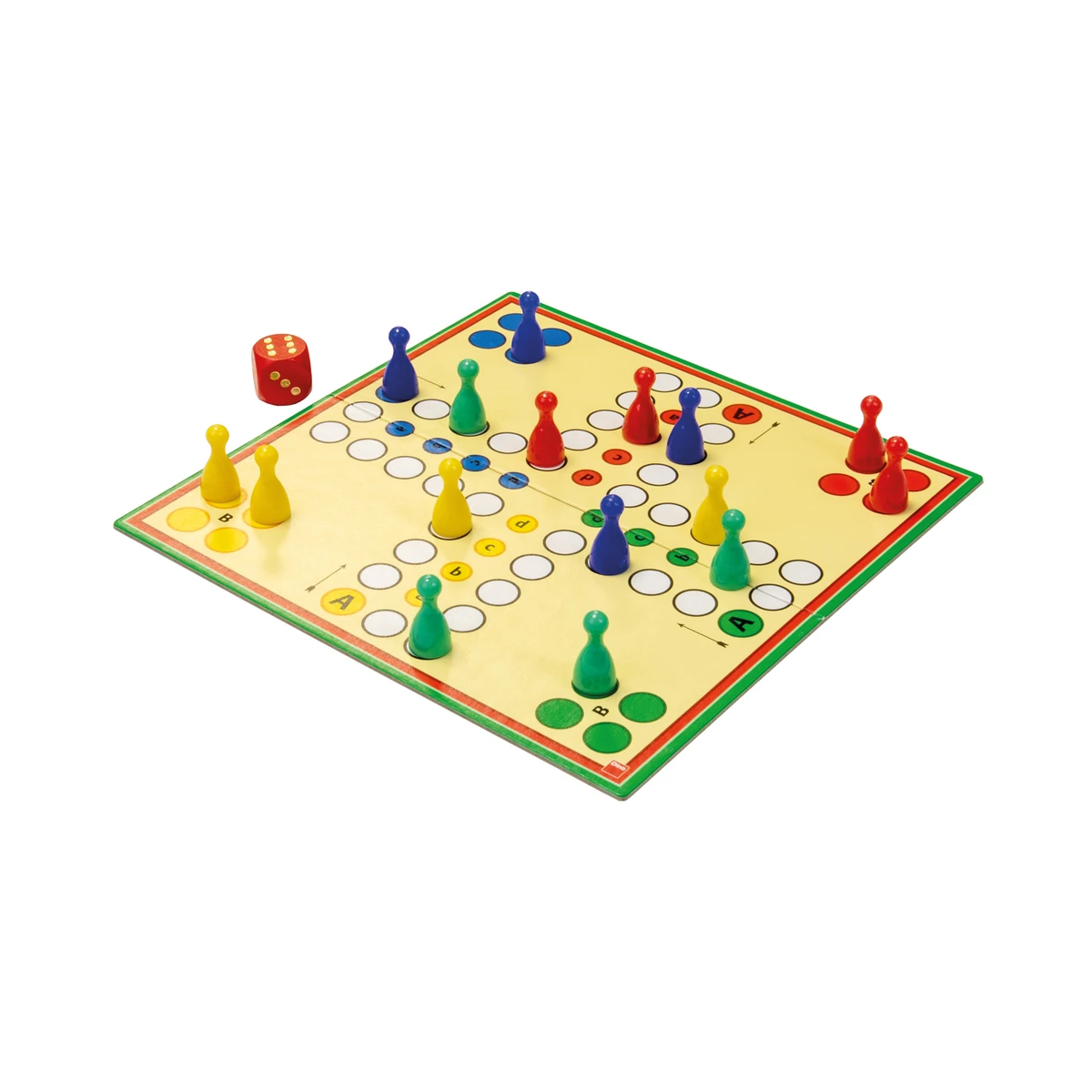 Balení obsahuje: 1 herní plán, 16 figurek ve 4 barvách, 1 hrací kostka, 1 návod ke hře.