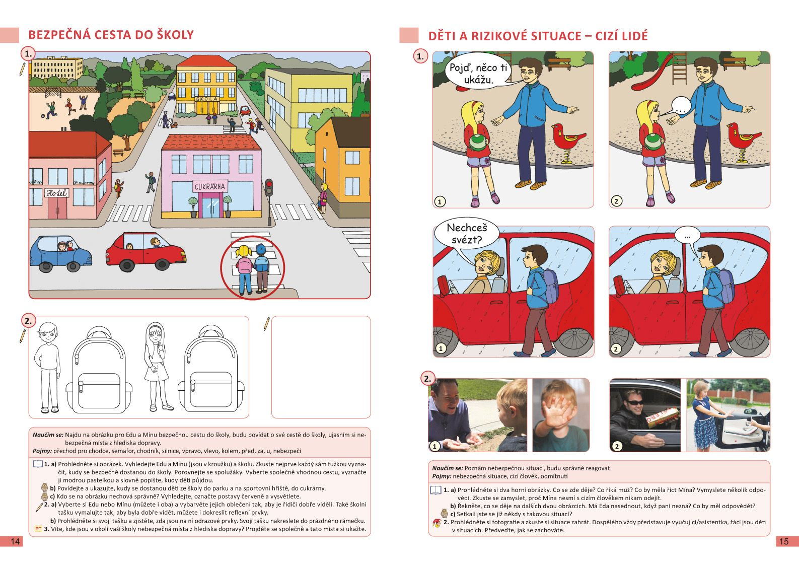 Děti mohou do učebnice kreslit a s postupem času i psát. Je zde zařazeno mnoho obrázků a fotografií, které jsou srozumitelné i bez dovednosti čtení a psaní. Postupně se objevují krátké texty psané velkými tiskacími písmeny.