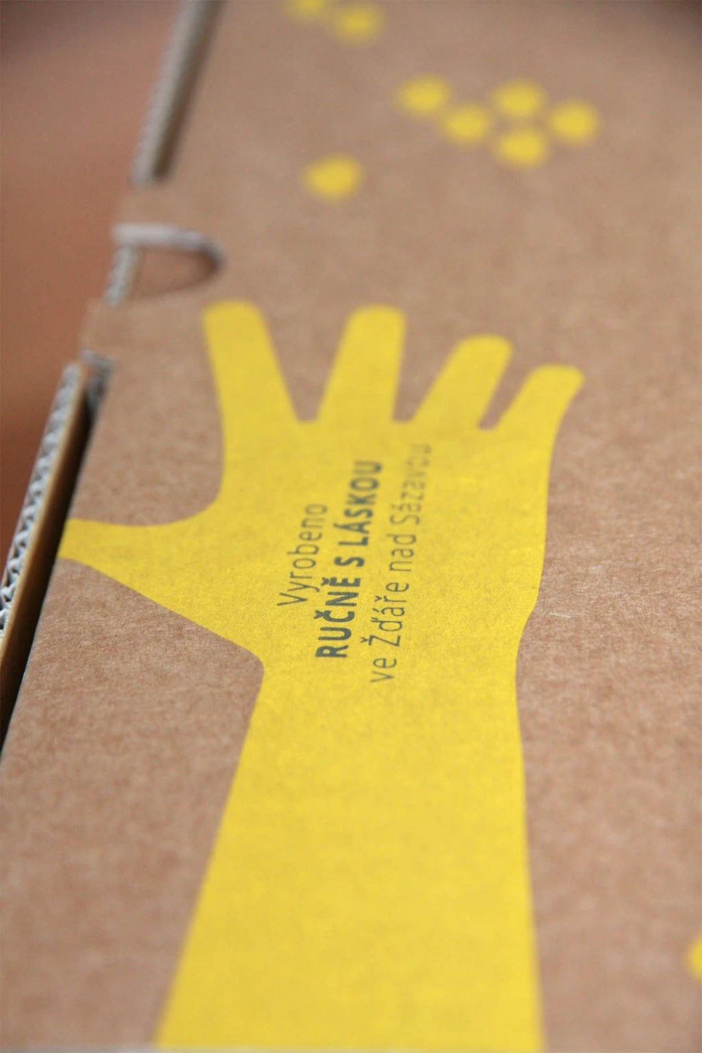 Zapomeňte na obyčejné a nudné balení. Krabice je vyrobena v nádherné žluté barvě, která okamžitě přitáhne pozornost a vykouzlí úsměv. Kombinace přírodní kartonové textury s moderním minimalistickým designem působí elegantně, hravě a přitom luxusně.