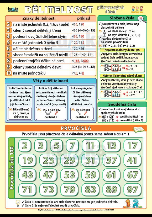 Nástěnný obraz pro výuku matematiky – dělitelnost přirozených čísel, prvočísla