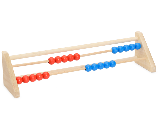 Počítadlo je vhodné demonstraci nebo pro dva žáky v lavici. Každá řada je tvořena 5 modrými a 5 červenými kuličkami.. Vyrobeno z masivu.