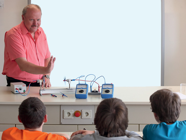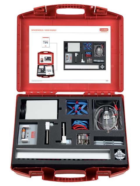 Moderní demonstrační a studentská souprava slouží k experimentování s přeměnou kinetické energie větru na mechanickou a pak na elektrickou energii.