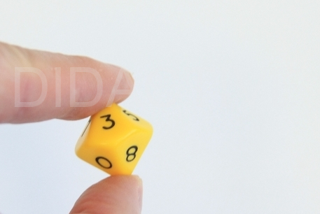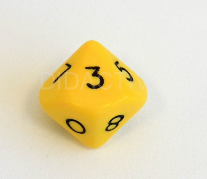 Desetistěnná hrací kostka s čísly 0-9, žlutá 1ks