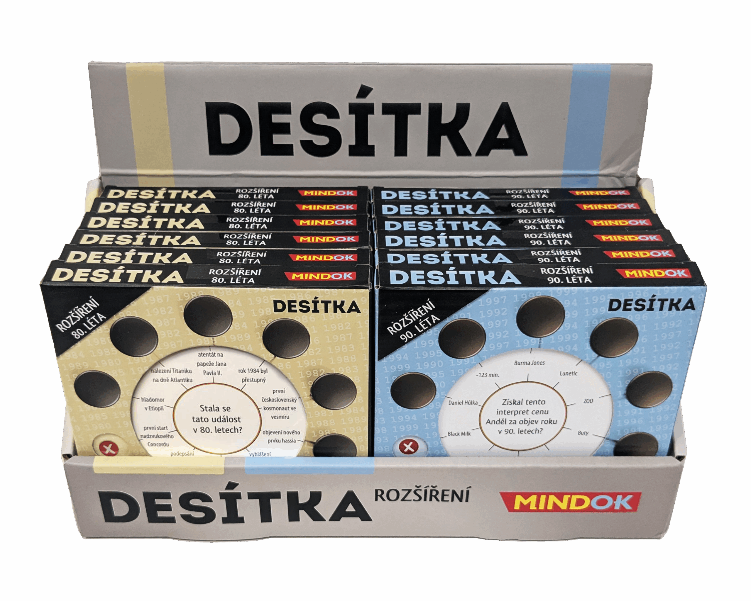 V tomto rozšíření najdete 50 nových oboustranných karet! 100 nových okruhů, 1000 nových otázek a odpovědí týkajících se 90. let 20. století.