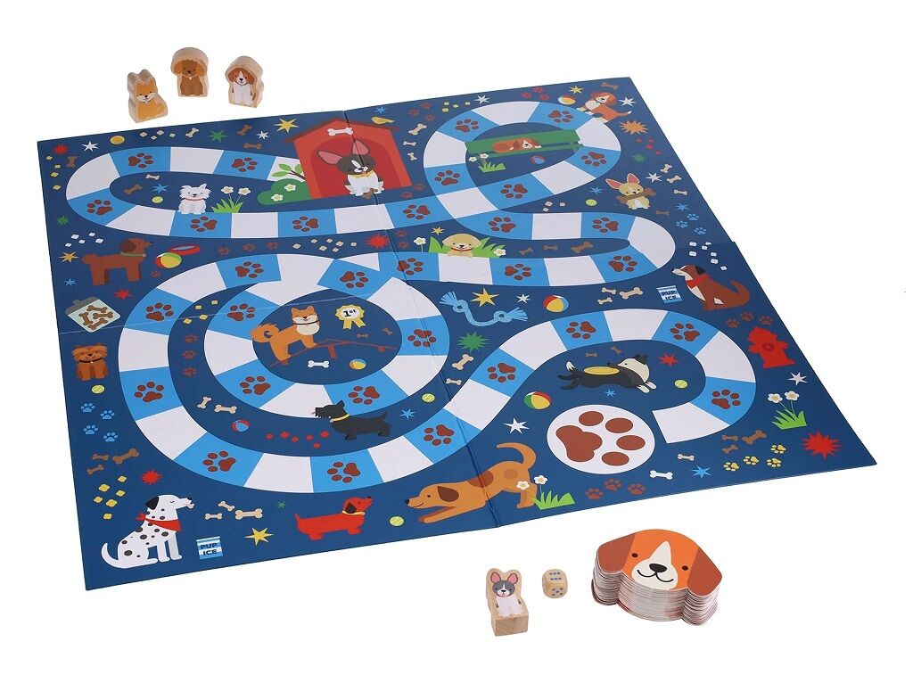 Táto akčná hra o chlpatých štvornohých kamarátoch vás udrží v strehu! Otestujte svoje znalosti o psoch a predveďte všetko, čo súvisí so psom, keď pohybujete svojou psou postavou po hracej ploche. Vieš štekať ako šťastný pes? Dokážeš sa naháňať za chvostom ako šteňa? Buďte prvý, kto dorazí do cieľa. Perfektný pre rodiny, priateľov a milovníkov psov, ale aj pre všetkých fanúšikov doskových hier. Priemerná doba hrania je 20 minút. Hra je vhodnou pomôckou na precvičovanie angličtiny. Doskové hry sú skvelým spôsobom, ako deti naučiť hodnotám trpezlivosti, sústredenia, vyhrávania a prehrávania s gráciou a ako sa hrať s ostatnými. U mladších detí navyše rozvíja pohyb po hracej ploche, koordináciu ruka-oko a zručnosť. Postup hry: hráč, ktorý si naposledy pohladil psa, ide ako prvý. Hoďte kockou a posuňte svoj dielik psej postavy o zobrazený počet polí. Pokiaľ pristanete na psej labke, vezmete si kartu. Karta vás požiada, aby ste buď otestovali svoje znalosti o psoch, alebo predviedli niečo súvisiace so psom – napríklad štekanie ako šťastný pes alebo naháňanie chvosta ako šteňa! Dokončite akciu a môžete presunúť svoju figúrku o počet polí uvedených na karte. Pokiaľ to nedokážete, nie je to žiadny problém, jednoducho hra pokračuje ďalším hráčom, ktorý je na rade. Ten, kto sa ako prvý dostane do cieľa, vyhráva hru!