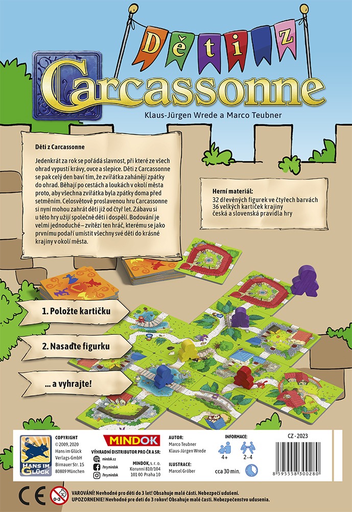 Celosvětově proslavenou hru Carcassonne si nyní mohou zahrát děti již od čtyř let. Zábavu u této hry si mohou společně užít děti i dospělí. Ve hře není žádné bodování, zvítězí ten hráč, kterému se jako prvnímu podaří umístit všechny své děti do krásné krajiny v okolí hradu.