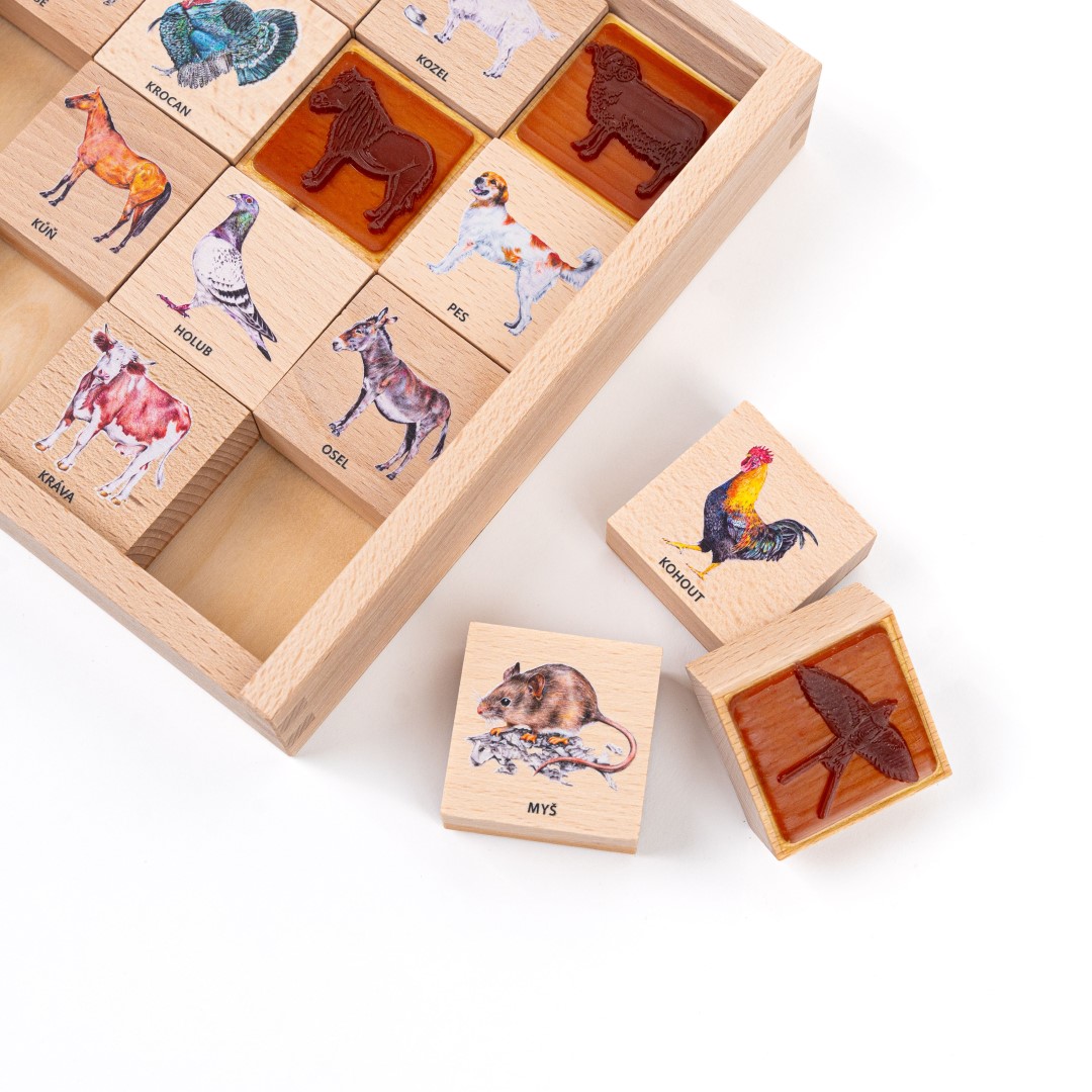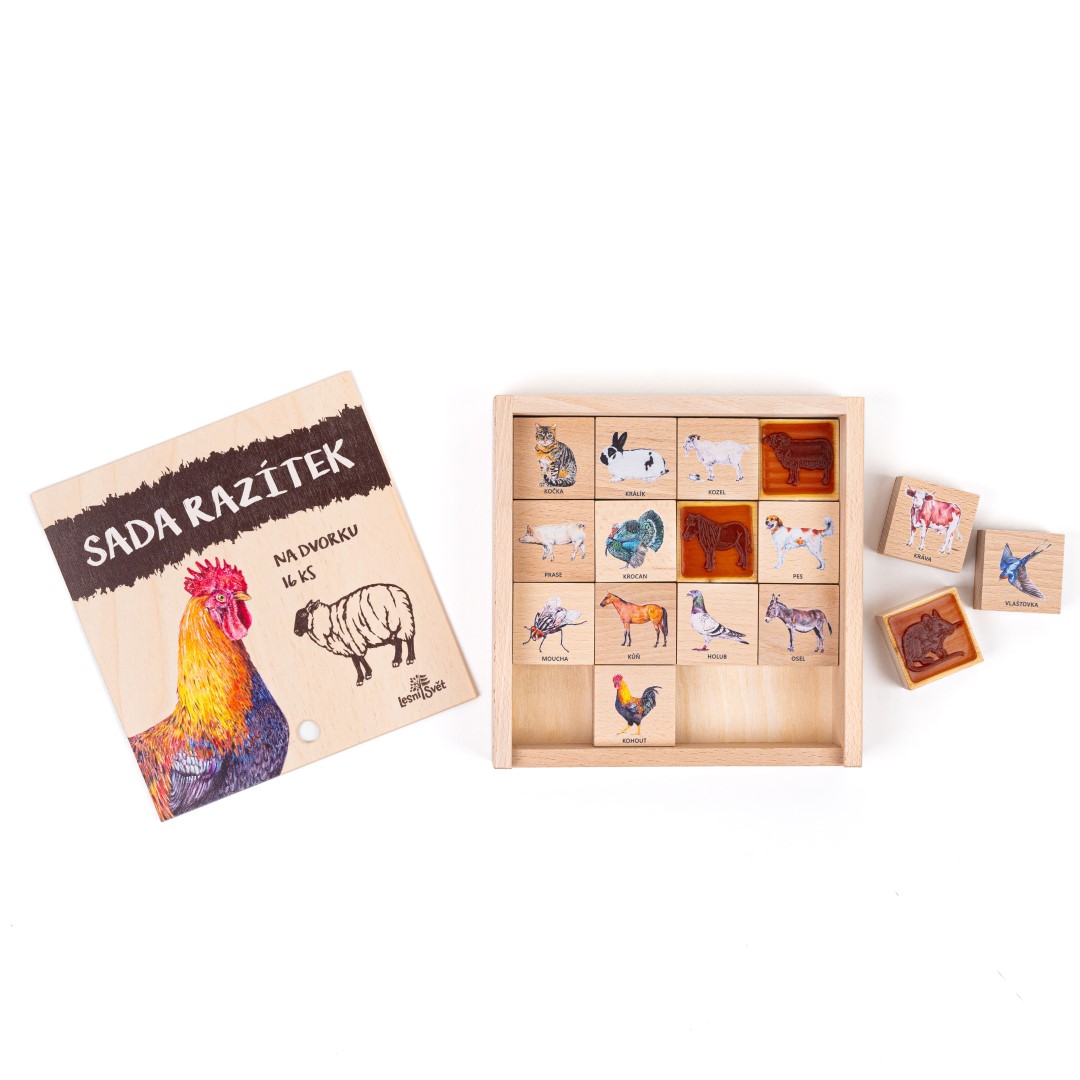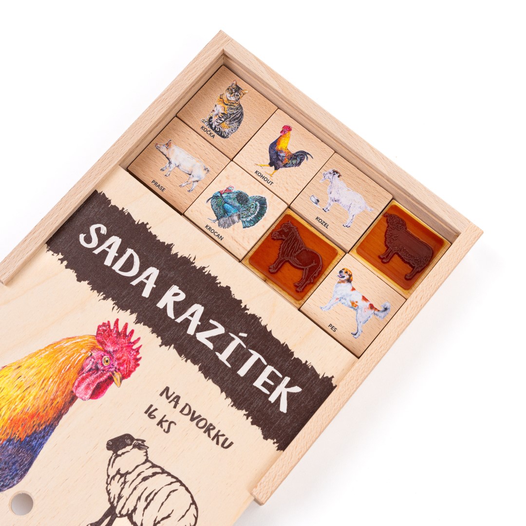 Která zvířata najdeme na dvorku se pomocí razítek v jedné sadě naučíte levou zadní!