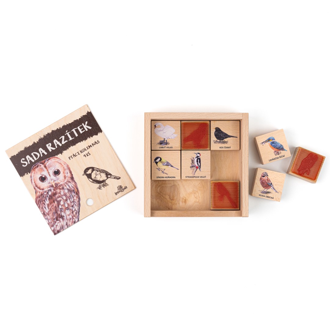 Sada 9 dřevěných razítek představuje nejznámější obyvatele ptačí říše. Je to kouzelná cesta, jak děti přirozeně vtáhnout do světa přírody a podnítit jejich fantazii.