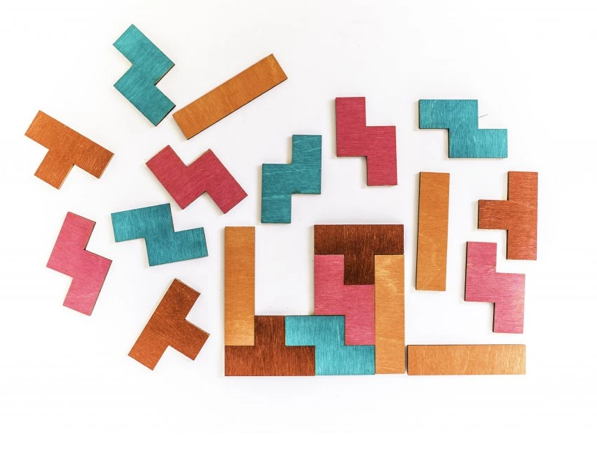 Doplňující sada, kterou následně přidáte do plátěného pytlíku k sadě základní (kód: 030MHDDP), zahrnuje dílky typu "T", levostranné "Z", pravostranné "Z", "I" na délku čtyř dílků.