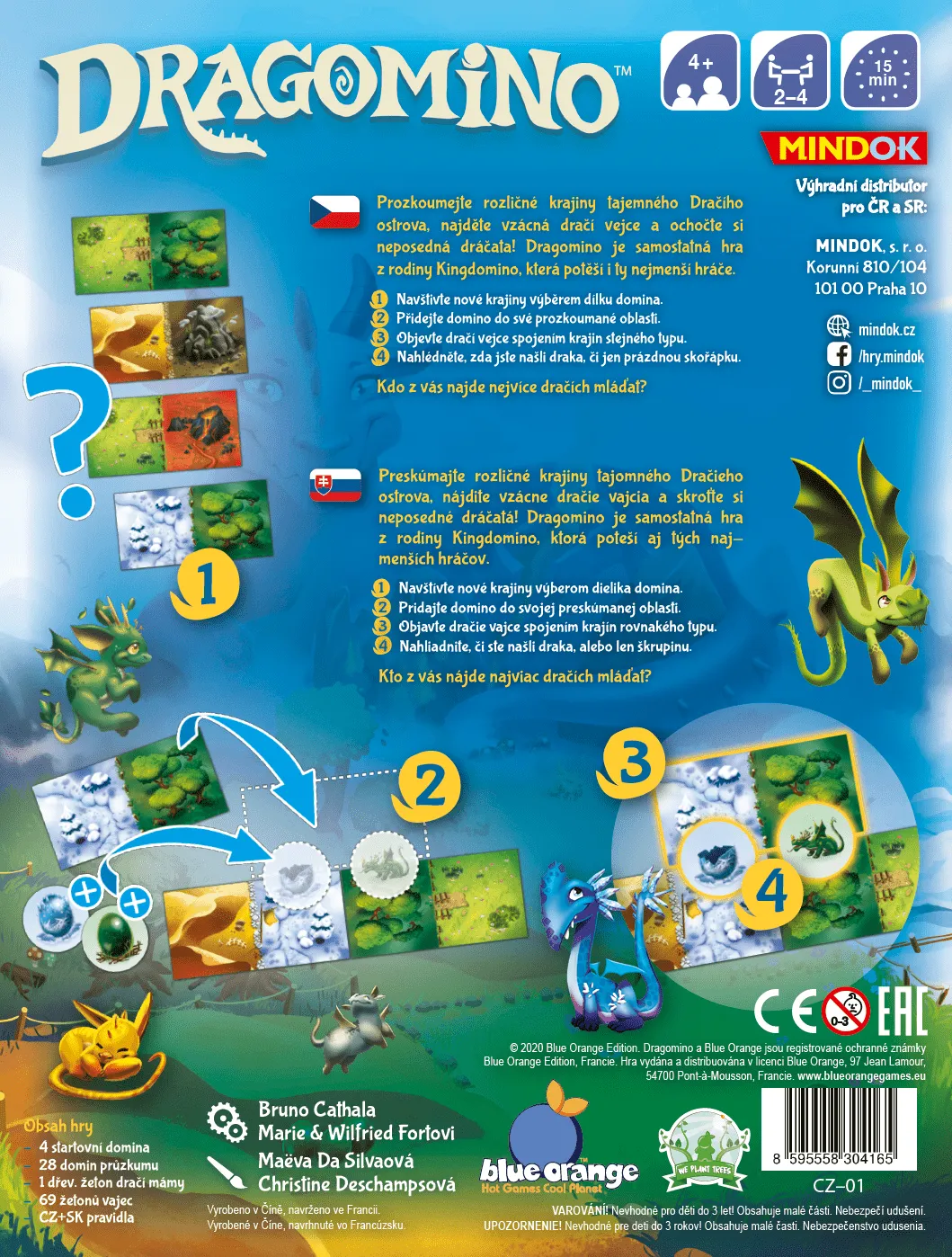 Prozkoumejte rozličné krajiny tajemného Dračího ostrova, najděte vzácná dračí vejce a ochočte si neposedná dráčata! Dragomino je samostatná hra z rodiny Kingdomino, která potěší i ty nejmenší hráče.