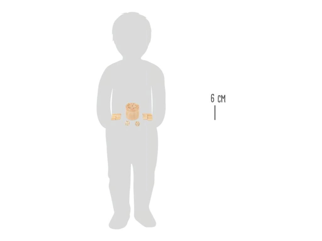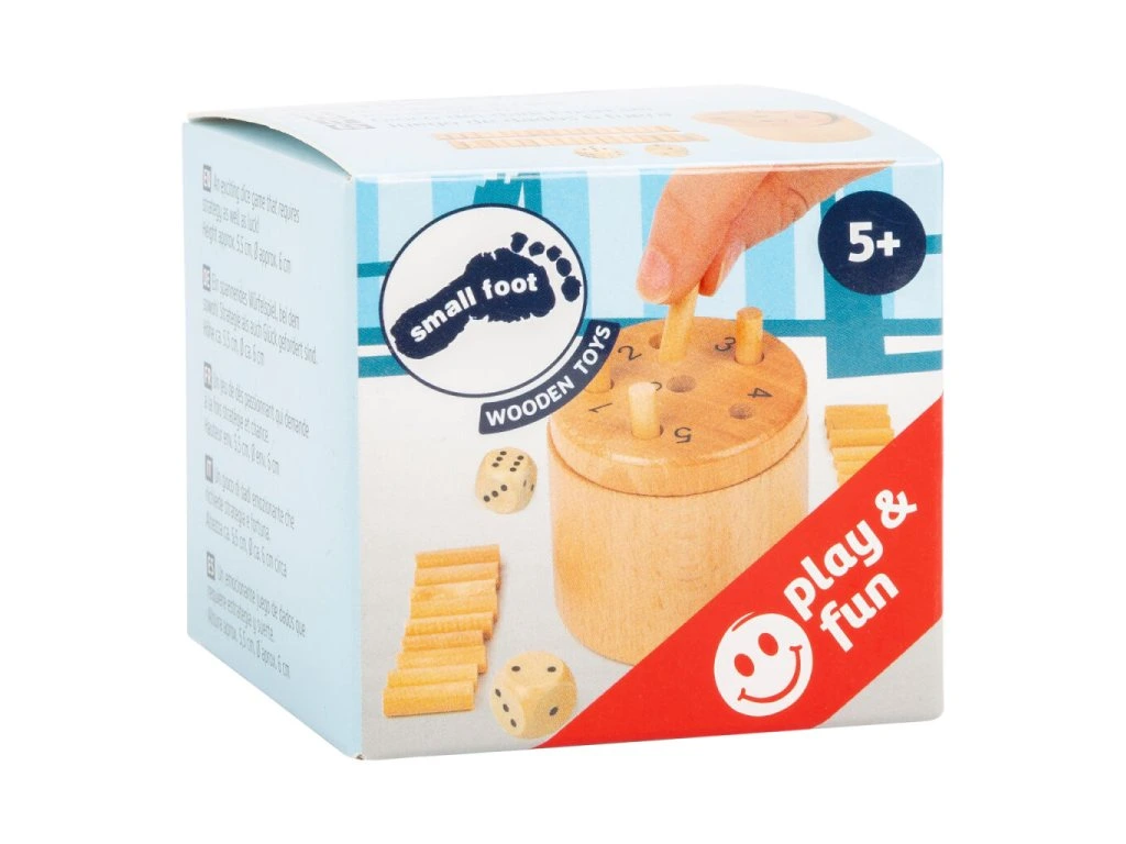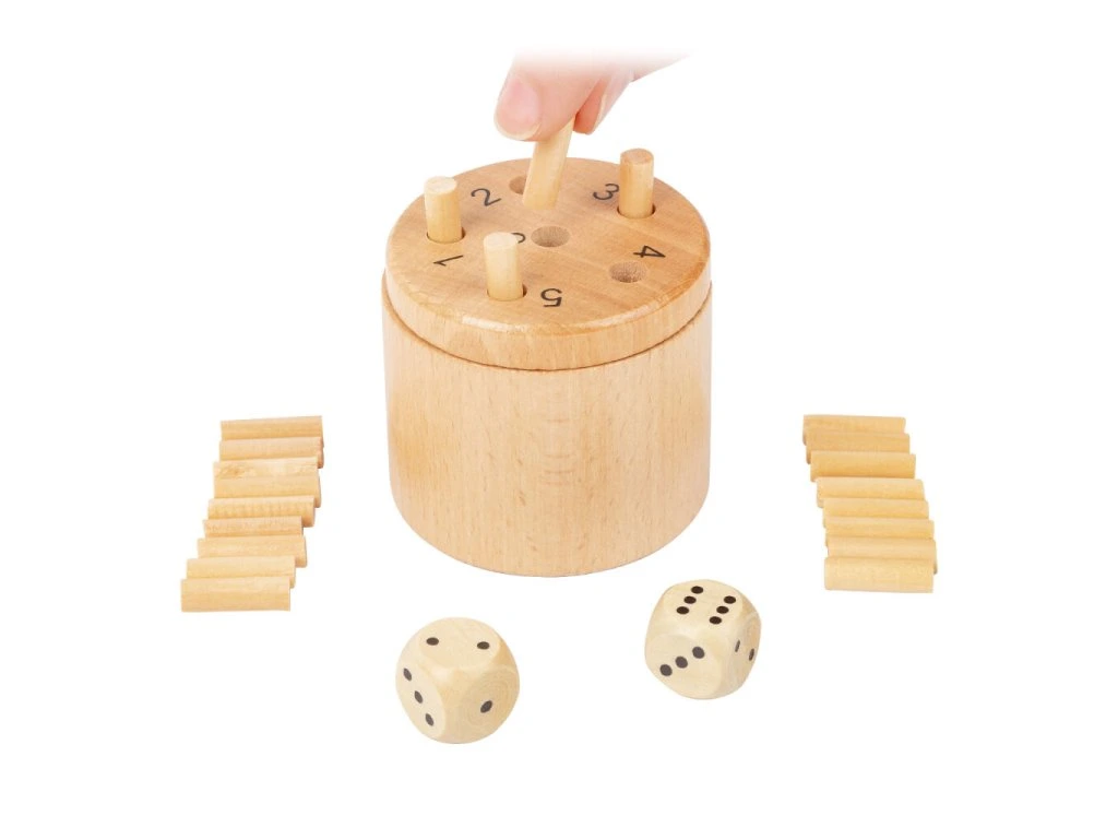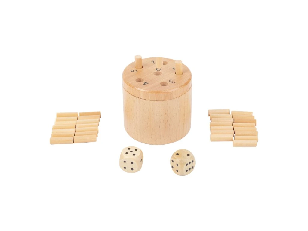 Cílem je zbavit se všech vašich tyčinek jejich umístěním do správných otvorů, podle toho, jaké číslo padne na kostce. A tady je něco obzvláště praktického: přidáním druhé kostky lze tuto společenskou hru rozšířit na druhou variantu, která vyžaduje strategické myšlení v každém herním kole. Po dokončení hry lze herní dřevěnou nádobu jednoduše použít jako úložný box. Kdo má největší štěstí při hodu kostkou?