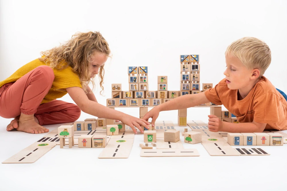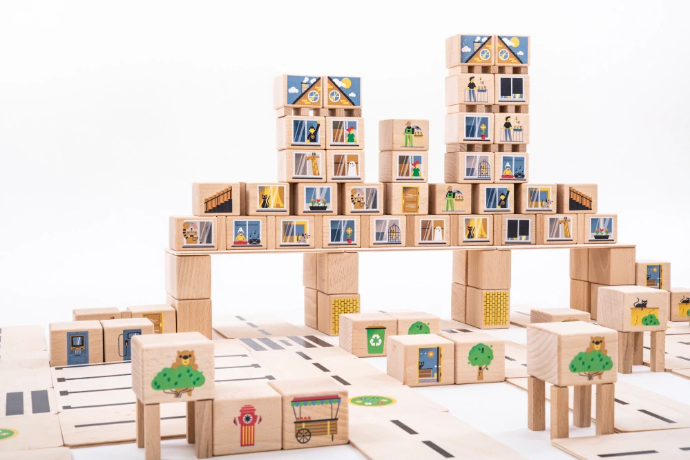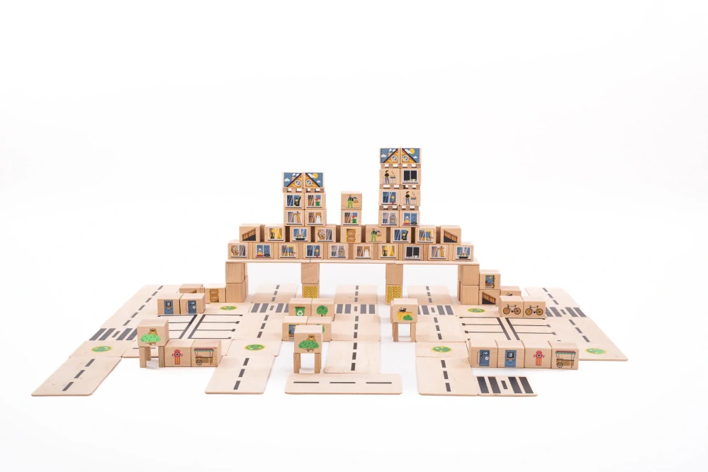 Dřevěné kostky slouží jako vzdělávací materiály navržené tak, aby inspirovaly děti ke kreativní hře, a jsou cenným doplňkem školních a mateřských škol. Dřevěné kostky mají moderní design a architektonické prvky, které vybízejí k plánování, stavbě a podpoře prostorové představivosti v každé fázi vývoje dítěte. Každá hra je jiná a každá budova je skutečně jedinečná!