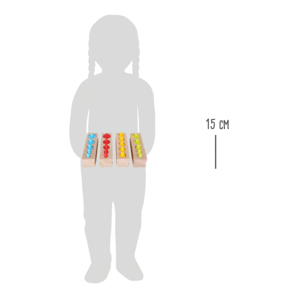 Tato pestrobarevná logická hra povzbuzuje děti k porovnávání, organizaci, počítání, měření a strukturování. Tato hračka z masivního dřeva se vyznačuje svou jednoduchostí a zřetelností. Procvičuje jemnou motoriku a pomáhá dětem v rozvoji jejich vnímání, inteligence a osobnosti. "Pomozte mi to udělat sám!" je přesně to, co doporučuje Montessori pedagogika!