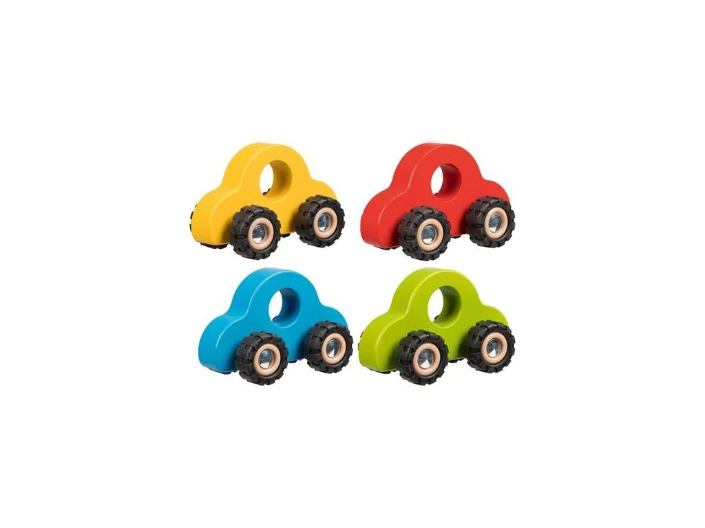 Dřevěné autíčko s ergonomickou rukojetí má pogumovaná kolečka a projede se tak snadno po koberci, na dlažbě i venku. Dětem se dobře drží. Certifikováno od 1 roku.