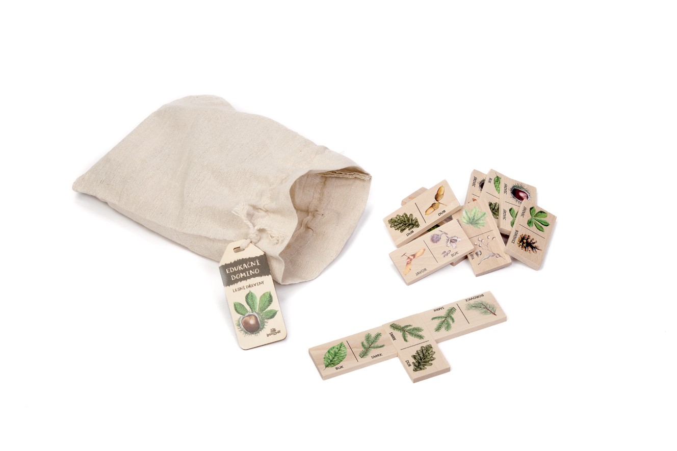 Spojte zábavu s učením! Naše dřevěné domino přináší klasickou hru v novém kabátě – místo teček děti hledají správné dvojice lesních dřevin. Je to