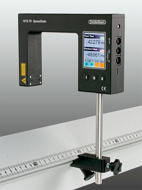 SpeedGate je dvou paprsková světelná brána s vestavěným displejem, který eleiminuje potřebu externího čítače/časovače. Pomocí dvou světelných paprsků je možné přímo měřit rychlost objektu, který prochází přes fotobuňku. Údaje se zobrazují na integrovaném TFT displeji. Kromě světelných paprsků lze k spuštění a zastavení čítače použít externí signály. To umožňuje měřit například časový interval mezi průchodem přes dvě brány. Bránu použít i bez využití světelných paprsků. Tímto způsobem lze SpeedGate použít pro univerzální časování např. se dvěma mikrofony.