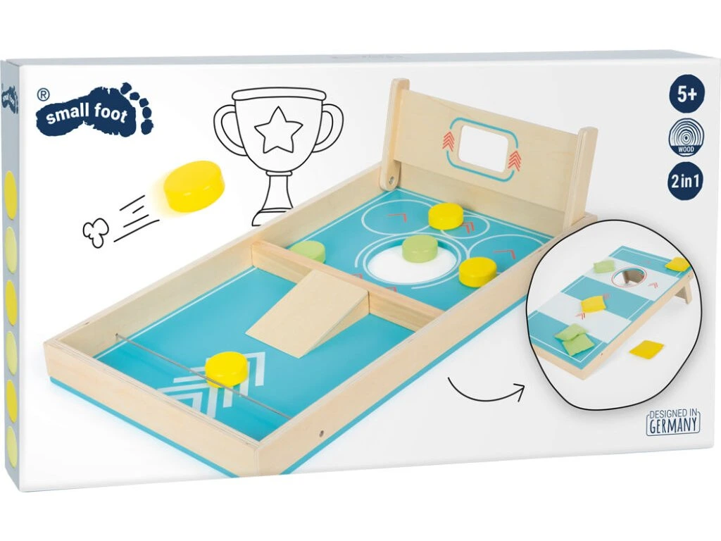 Tato multifunkční dřevěná hra vám přinese zábavu 2 v 1. Cornhole je americká hra, při které se snažíte bavlněný pytlík prohodit otvorem na desce. Ve stolním hokeji zase vystřelujete puk pomocí gumičky a snažíte se získat co nejvíce bodů. Dvě zábavné hry si můžete zahrát v párech nebo týmech všeho věku.